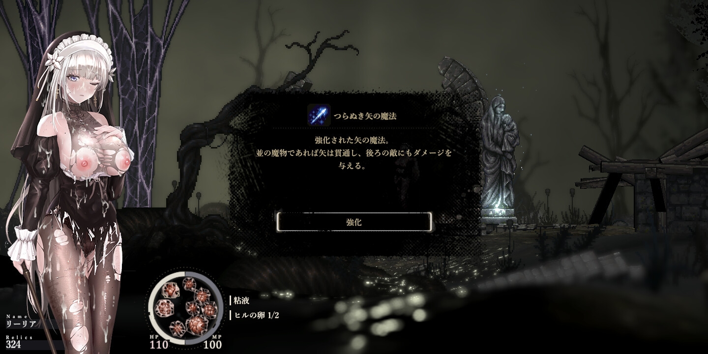 这是一款简单的动作RPG,主题围绕绝望、毁灭与被虐待的官能展开。玩家在被诅咒的城镇阿尔塞宗扮演魔法姐妹,消灭魔物并探索地下城。游戏包括主线故事和支线事件,通过攻击与魔法对抗敌人。失败时会出现各种剧情,包括捕食和精神控制,配合丰富的像素动画增强体验。