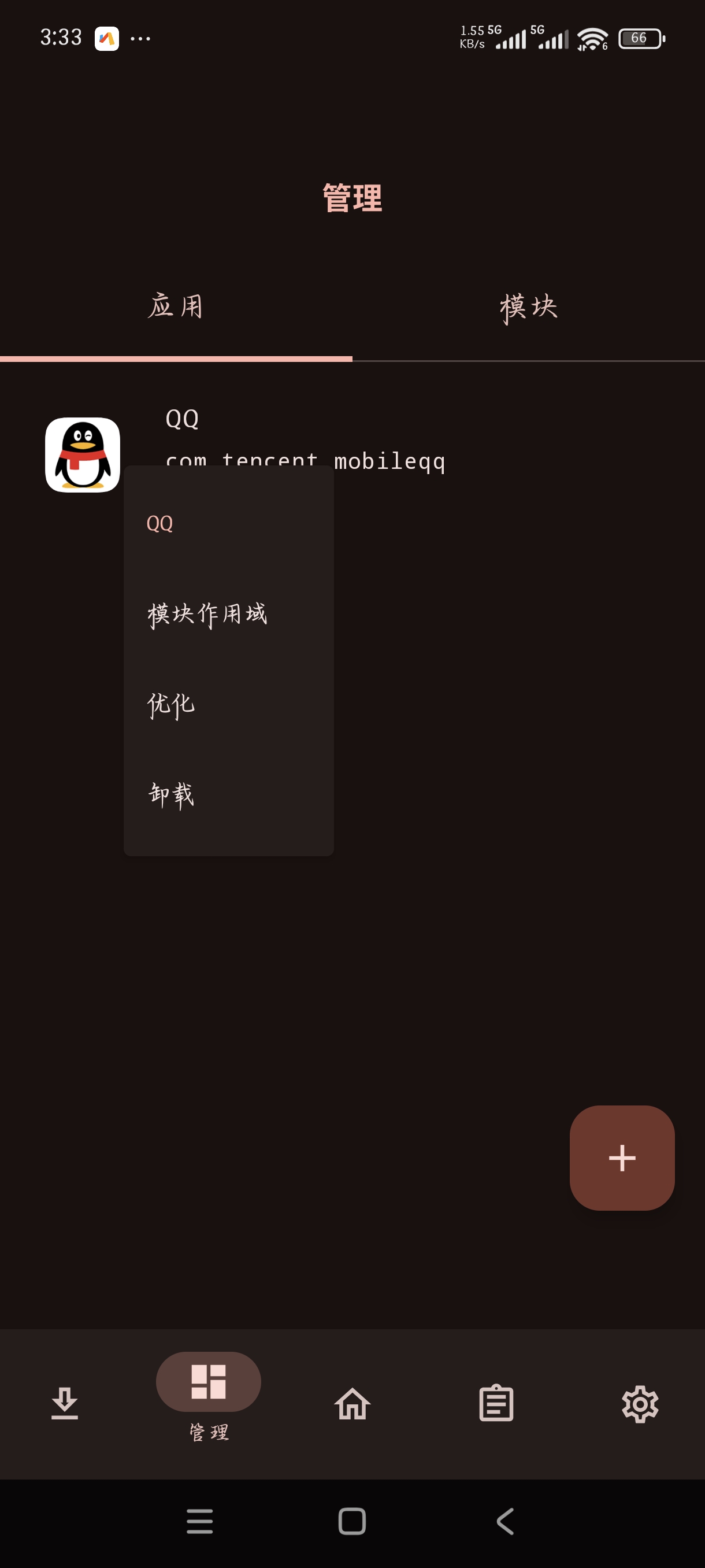 点击QQ选择模块作用域可进行装配或卸下模块