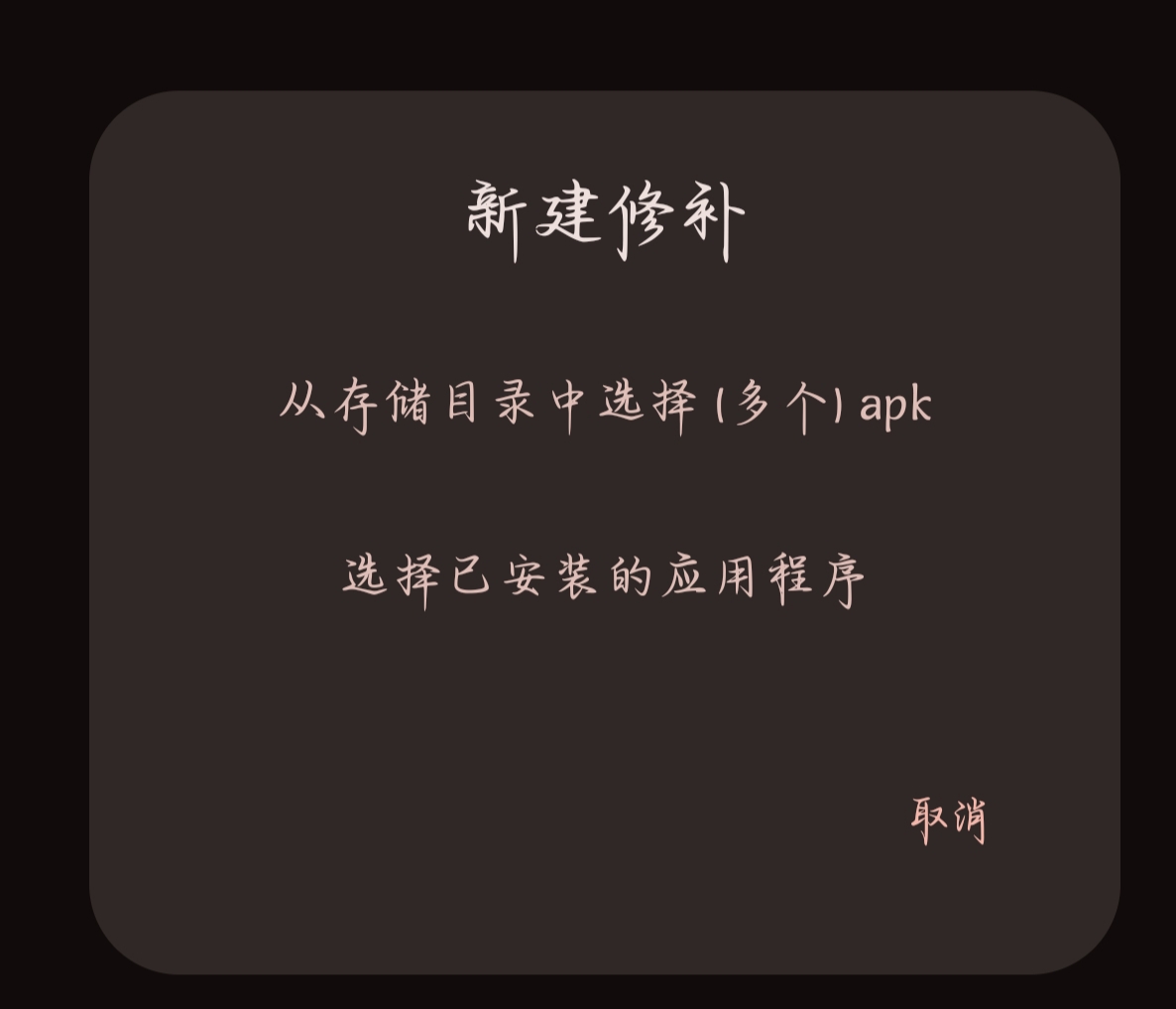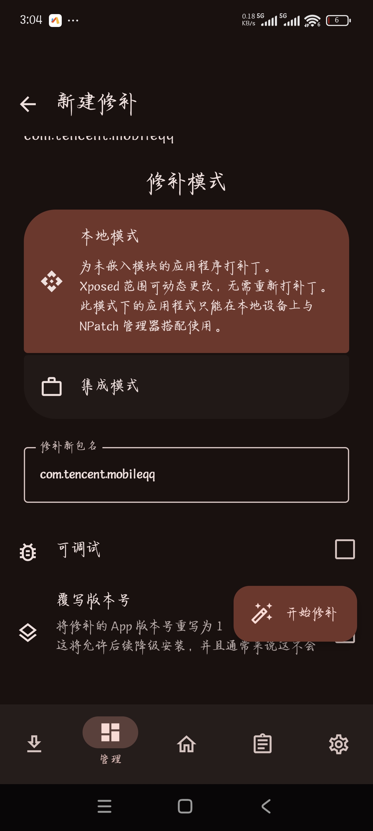 集成模式(内置)此模式下修补的应用可以直接使用,且可以跨机型使用(但修补之后无法更改已装载模块,且无法从根源禁用)
